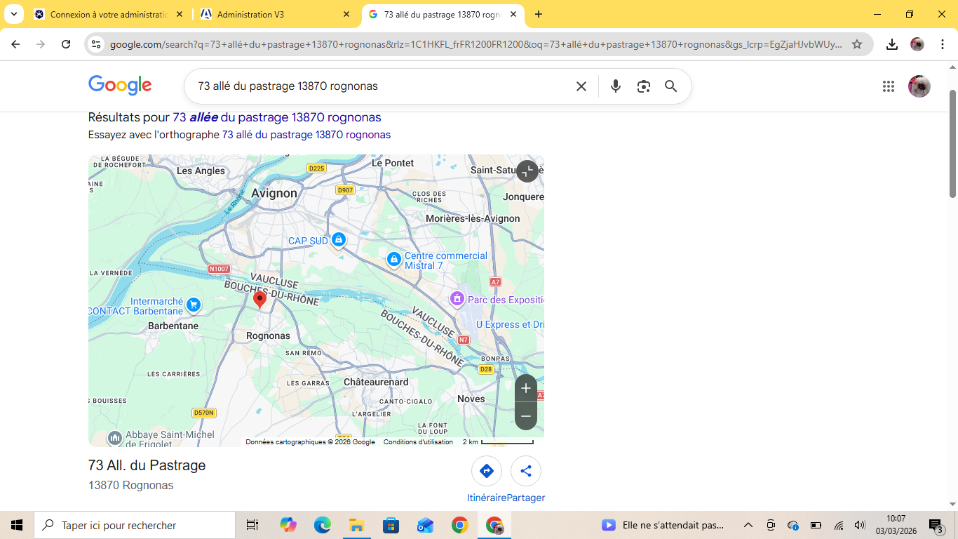 A 2 km du pont de Rognonas, a 5 min d'Avignon courtine et à 15 min de la sortie d'autoroute.